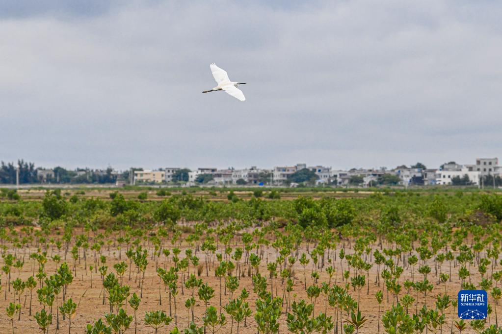 11月8日,鷺鳥在海南省儋州市新英鹽場濕地上空飛翔。新華社記者 蒲曉旭 攝
