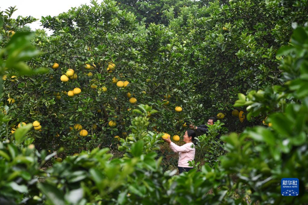 11月9日,在重慶市梁平區(qū)合興鎮(zhèn)龍灘村,村民在采摘柚子。