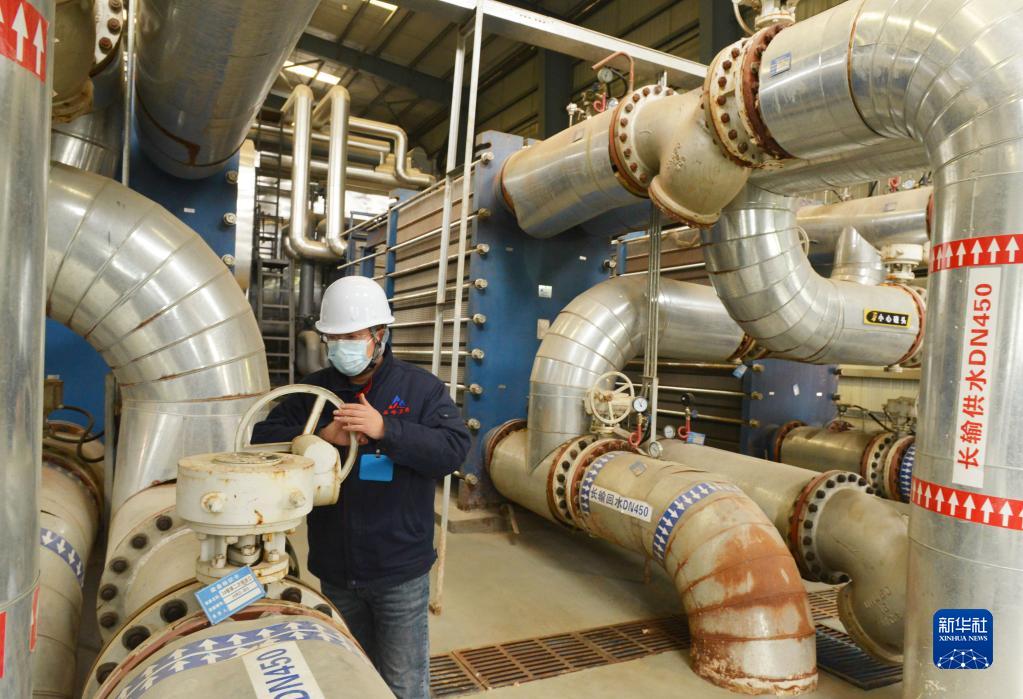 11月10日,在石家莊市一家供熱企業(yè),工作人員在運行車間內(nèi)調(diào)控設(shè)備。