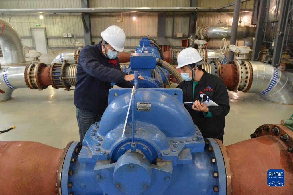 11月10日,在石家莊市一家供熱企業,工作人員在運行車間內檢查設備。