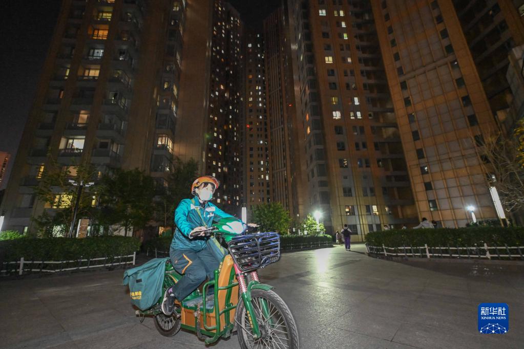 11月7日,劉婷騎電動車在天津市和平區金德園小區內投遞快件。