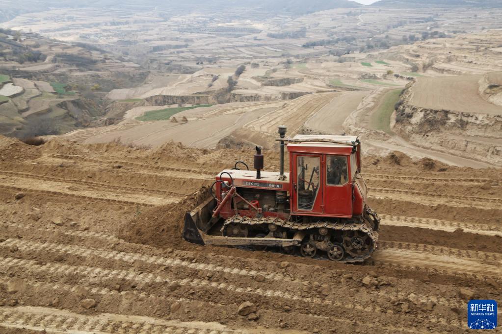 11月10日,施工機械在通渭縣什川鎮高標準農田建設現場作業。