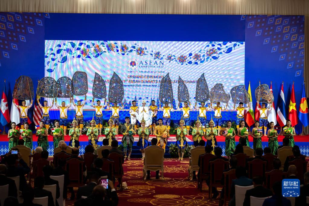 11月11日,在柬埔寨首都金邊,演員在第40屆和第41屆東盟峰會(huì)開(kāi)幕式上表演。