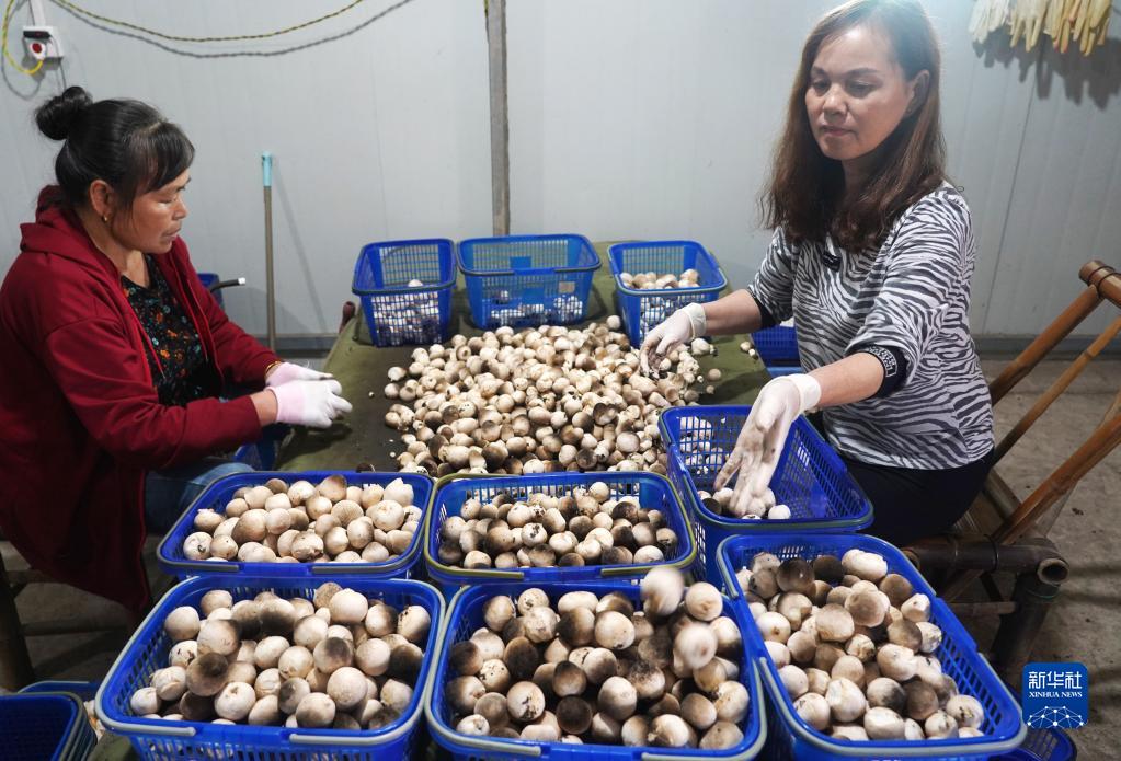 在南昌縣廣福鎮草菇產業基地,農民在分揀草菇(11月10日攝)。
