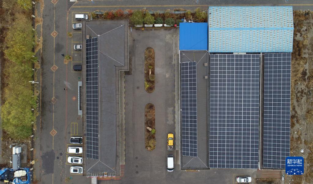 經過“零碳化”改造后的國網寧夏電力石嘴山供電公司長勝供電所全景(11月11日攝,無人機照片)。