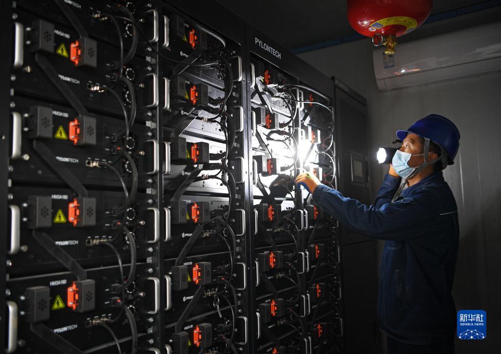 11月11日,國網寧夏電力石嘴山供電公司長勝供電所工作人員在檢查能源路由器設備運行狀態。