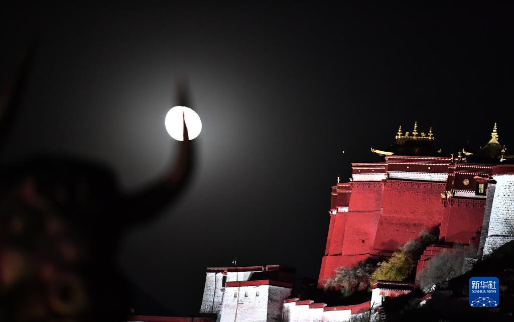 11月11日晚,一次賞心悅目的火星合月亮相天宇。這是在西藏拉薩市布達(dá)拉宮附近,記錄下的這幕“星月童話”。