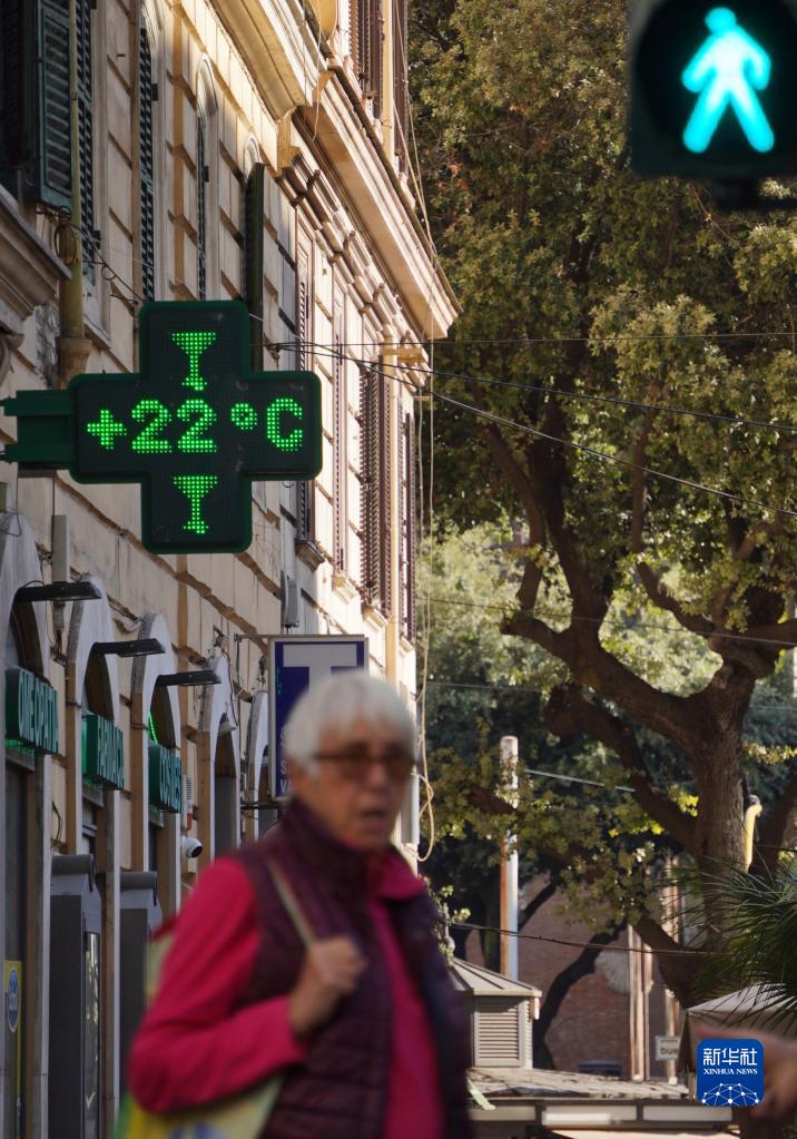 11月11日,意大利羅馬一處藥店的溫度計顯示實時溫度為22攝氏度。