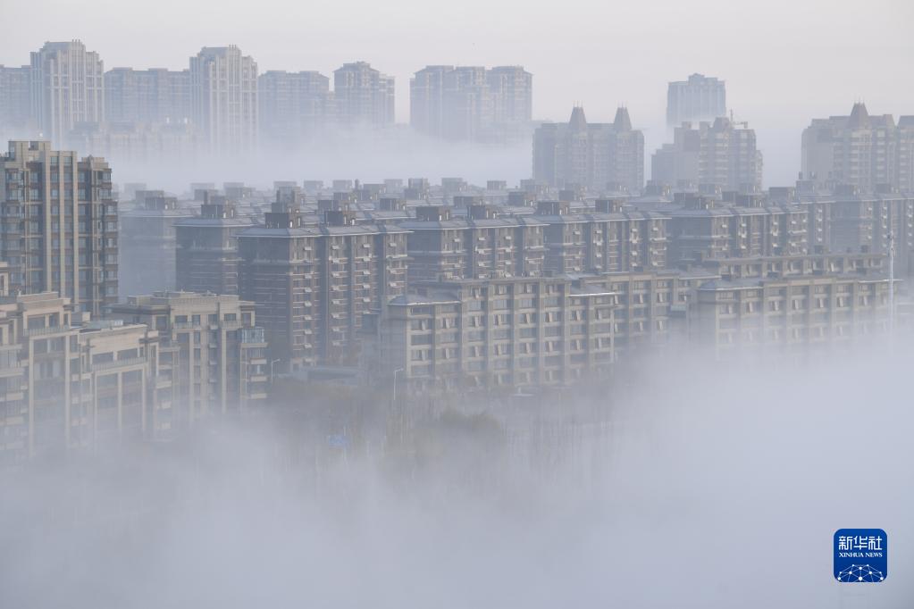 這是銀川上空的平流霧景觀(11月12日攝,無人機照片)。
