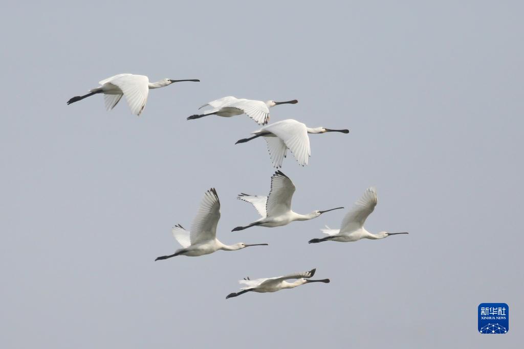 這是2022年10月22日拍攝的合肥市巢湖上空飛翔的候鳥(niǎo)。