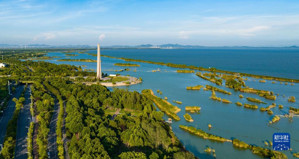這是2022年8月5日拍攝的位于合肥市包河區的巢湖湖濱濕地(無人機照片)。