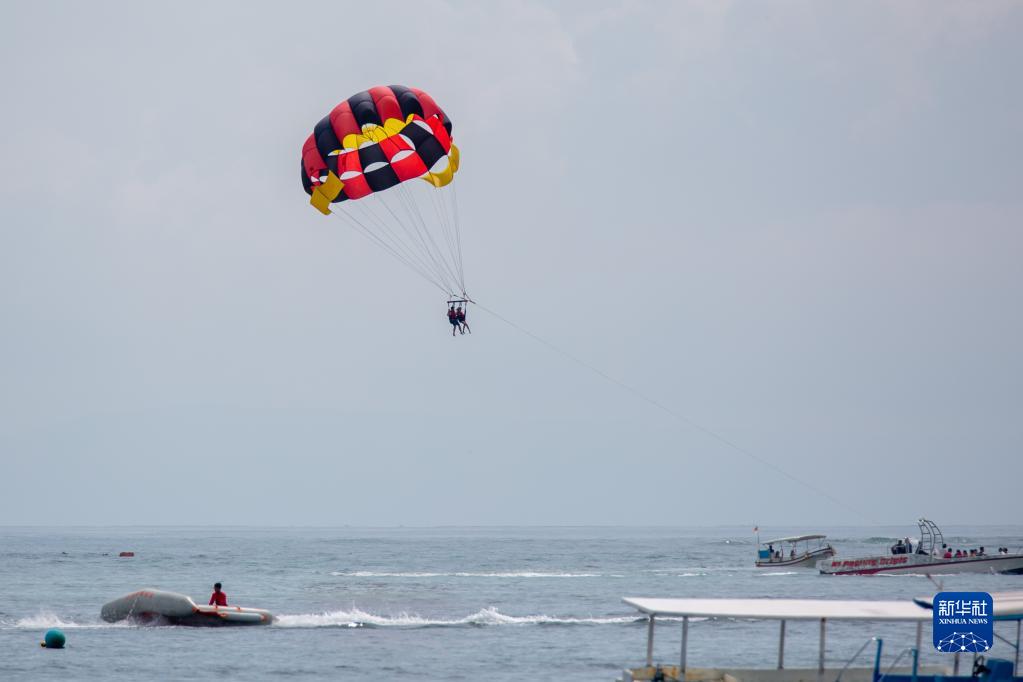 11月12日,在印度尼西亞巴厘島丹戎伯諾阿海灘,游客體驗水上帆傘運動。巴厘島是印度尼西亞著名的旅游勝地。新華社記者 王益亮 攝