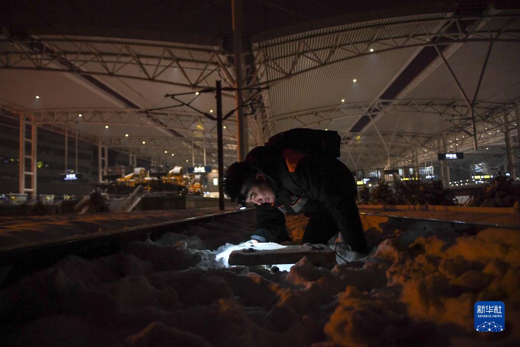 11月12日,吉林省長春市迎來降雪。13日凌晨,在長春火車站內,多個單位、工種相互配合,利用深夜列車停運的“天窗期”開展除冰除雪作業,確保列車行駛安全。