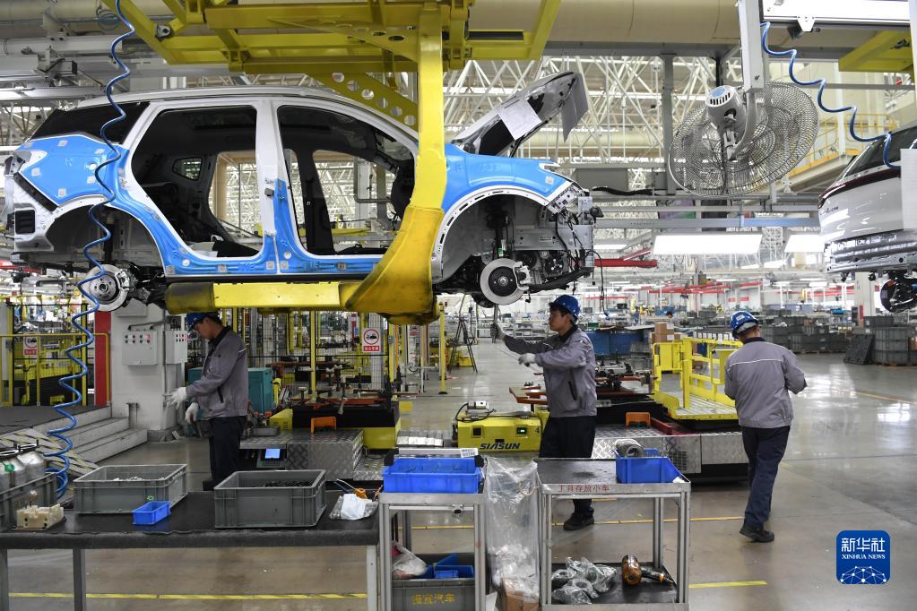 11月12日,工人在安慶一家汽車企業生產線上工作。
