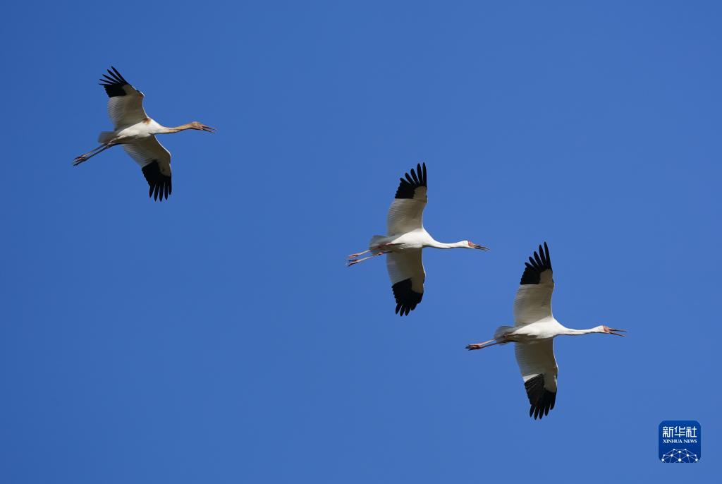 隨著冬季來臨,首批冬候鳥陸續抵達我國最大淡水湖江西鄱陽湖。在南昌高新區五星白鶴保護小區和鄱陽湖南磯濕地國家級自然保護區,白鶴、灰鶴、鴻雁、東方白鸛等多種候鳥棲息、覓食。