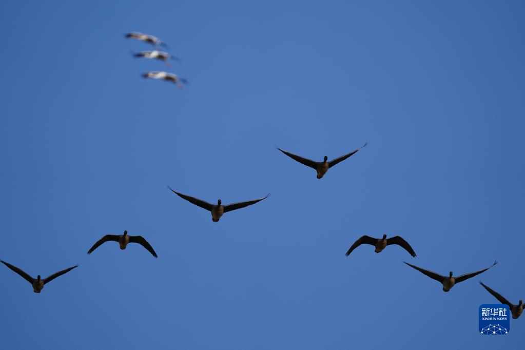 11月10日,豆雁在南昌高新區(qū)五星白鶴保護(hù)小區(qū)飛翔。