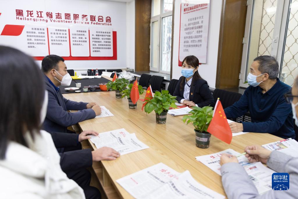 11月11日,在哈爾濱市志愿者協(xié)會(huì)辦公區(qū),郝麗影進(jìn)行宣講。