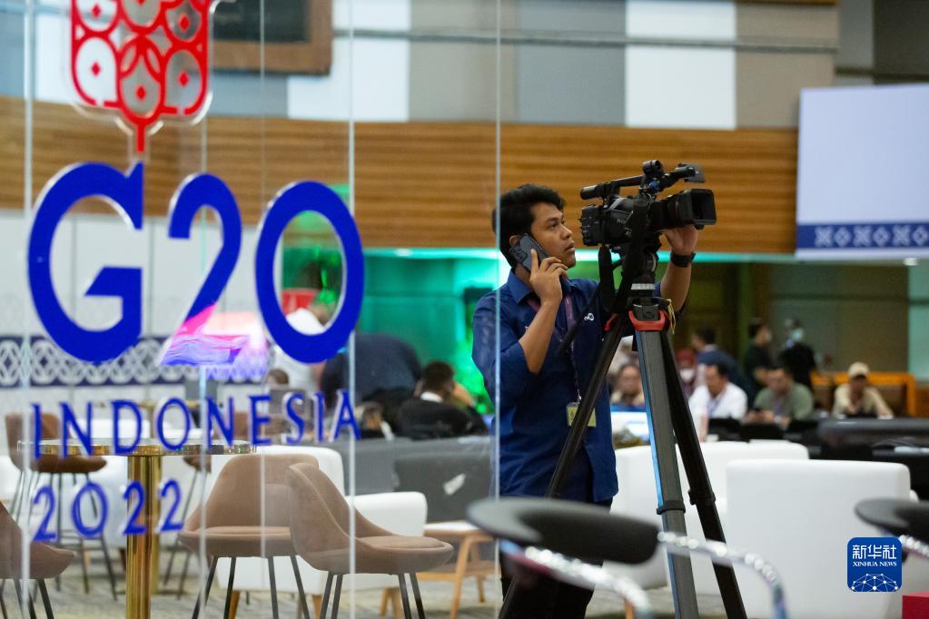11月13日,媒體工作者在印度尼西亞巴厘島的峰會媒體中心工作。