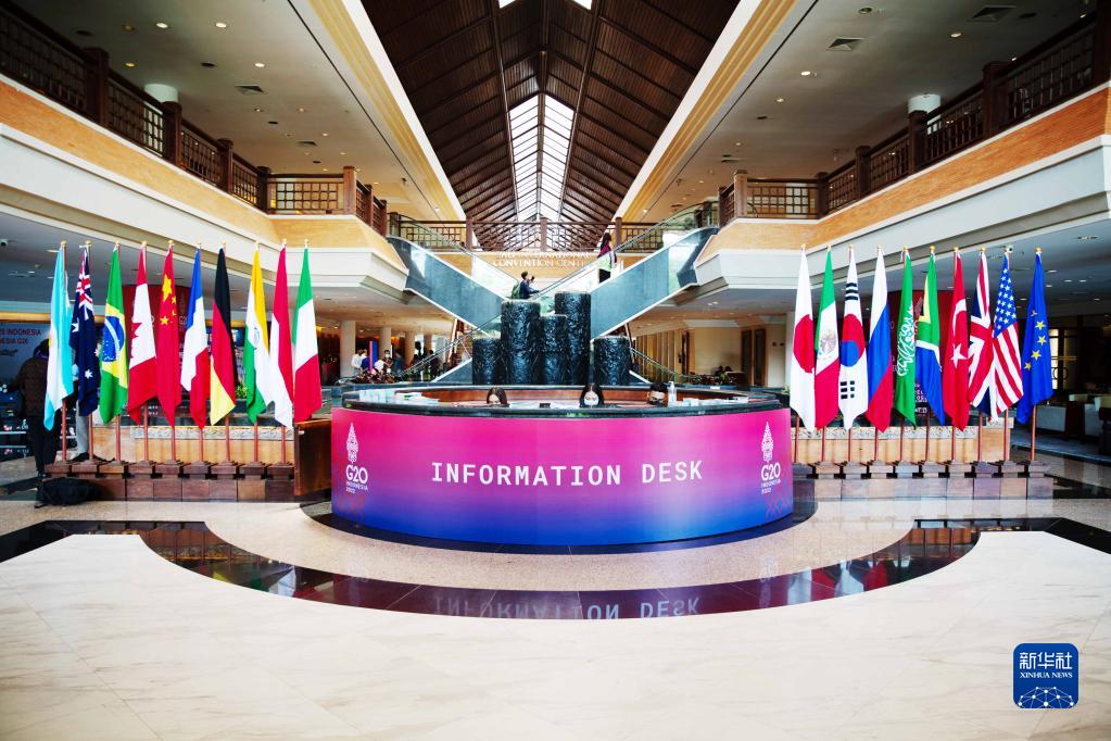 這是11月13日在印度尼西亞巴厘島拍攝的峰會媒體中心內(nèi)景。