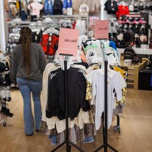 11月13日,一名女子在英國貝辛斯托克一家打折店鋪內。