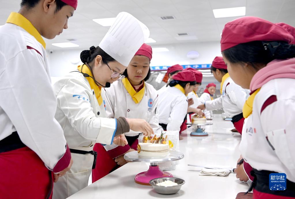 藍田廚師學(xué)校的學(xué)生在教師指導(dǎo)下學(xué)習(xí)蛋糕制作(11月15日攝)。