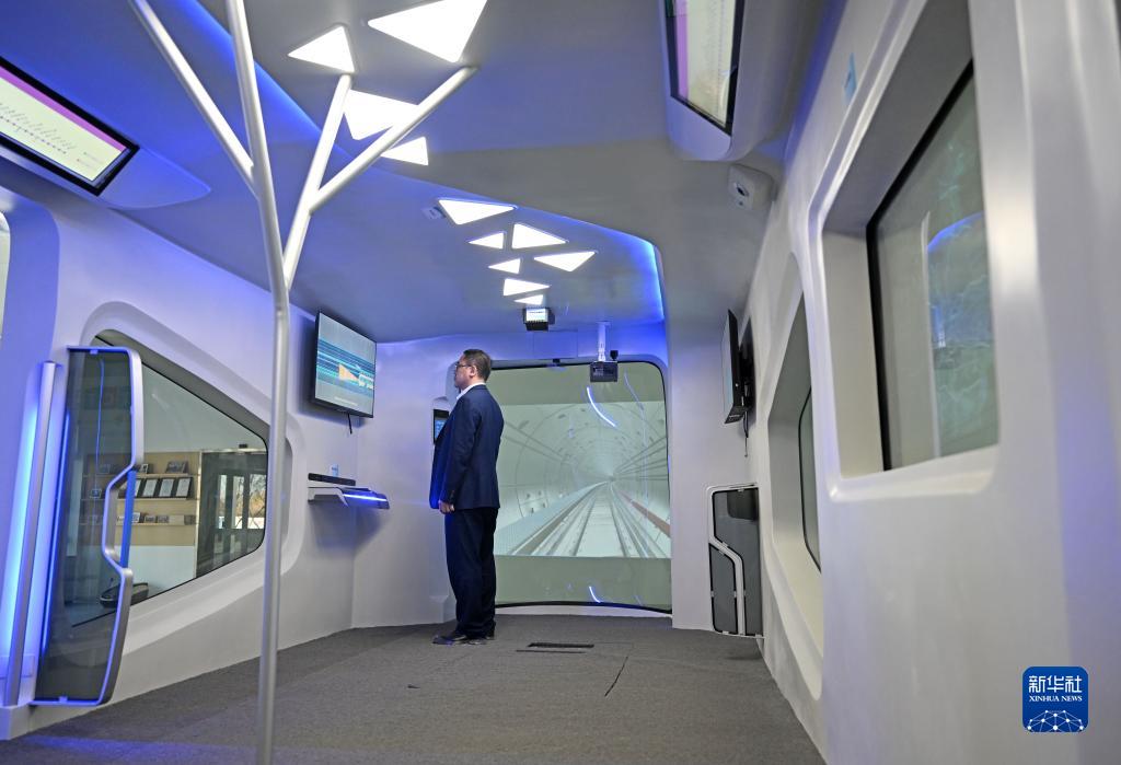 11月15日,在位于天津市武清區(qū)的交控技術(shù)裝備有限公司,工作人員在體驗無人駕駛車廂。