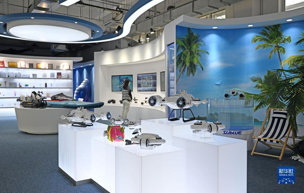 這是11月16日拍攝的深之藍海洋科技股份有限公司展廳內的水下機器人產品。