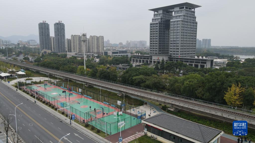 這是11月16日拍攝的銅陵市一處建設于鐵路橋附近的“口袋公園”(無人機照片)。