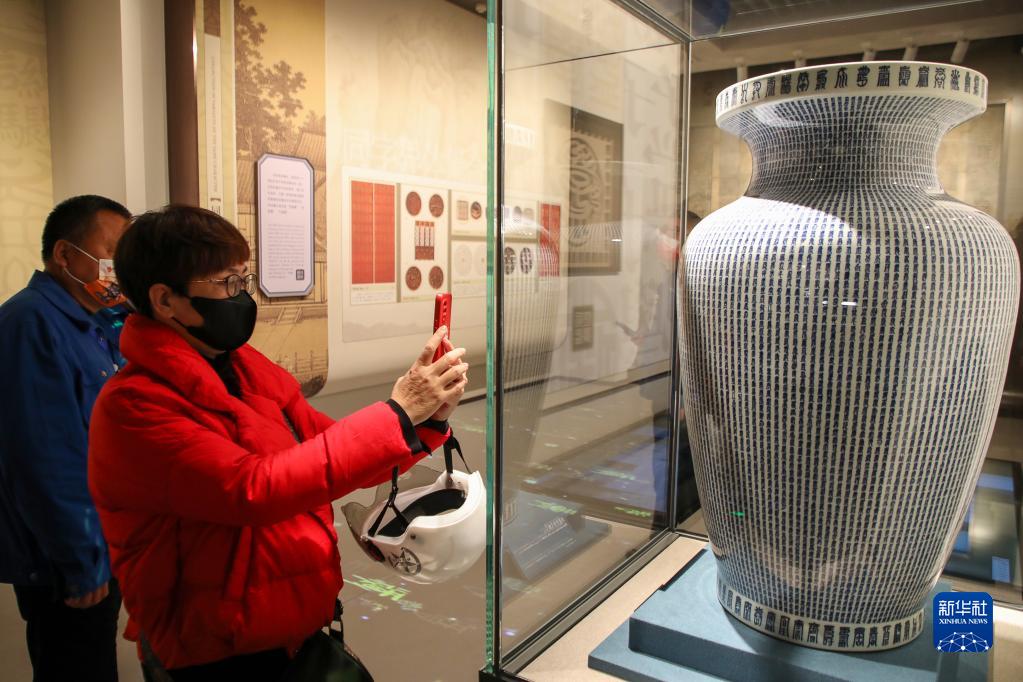 11月16日,游客在中國文字博物館續(xù)建工程展館內(nèi)參觀拍照。