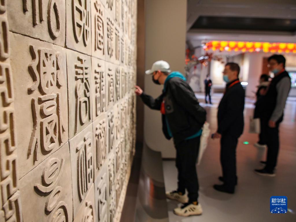 11月16日,游客在中國文字博物館續建工程展館內參觀。