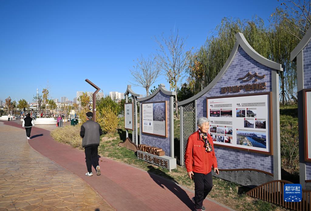 人們在天津市紅橋區子牙河濱河公園內散步(11月15日攝)。