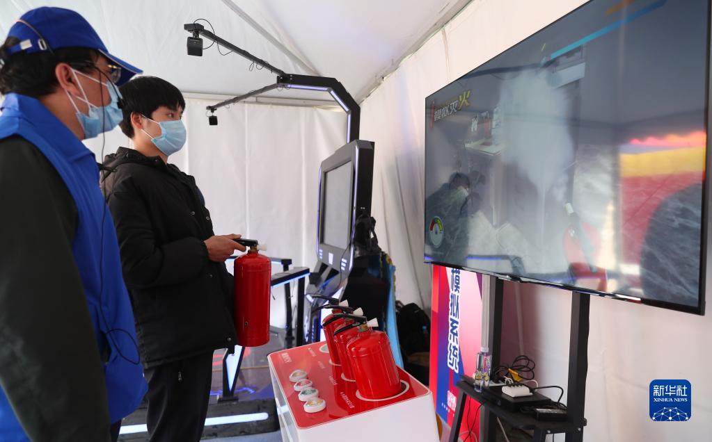 11月15日,在虹口區(qū)消防救援支隊(duì)舉行的宣傳活動(dòng)中,社區(qū)居民體驗(yàn)根據(jù)不同火情選擇正確滅火器撲救的模擬游戲。