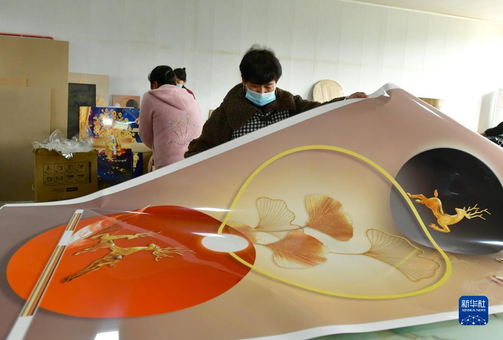 11月16日,在河南省夏邑縣桑堌鄉5G電商園,員工在包裝裝飾畫。