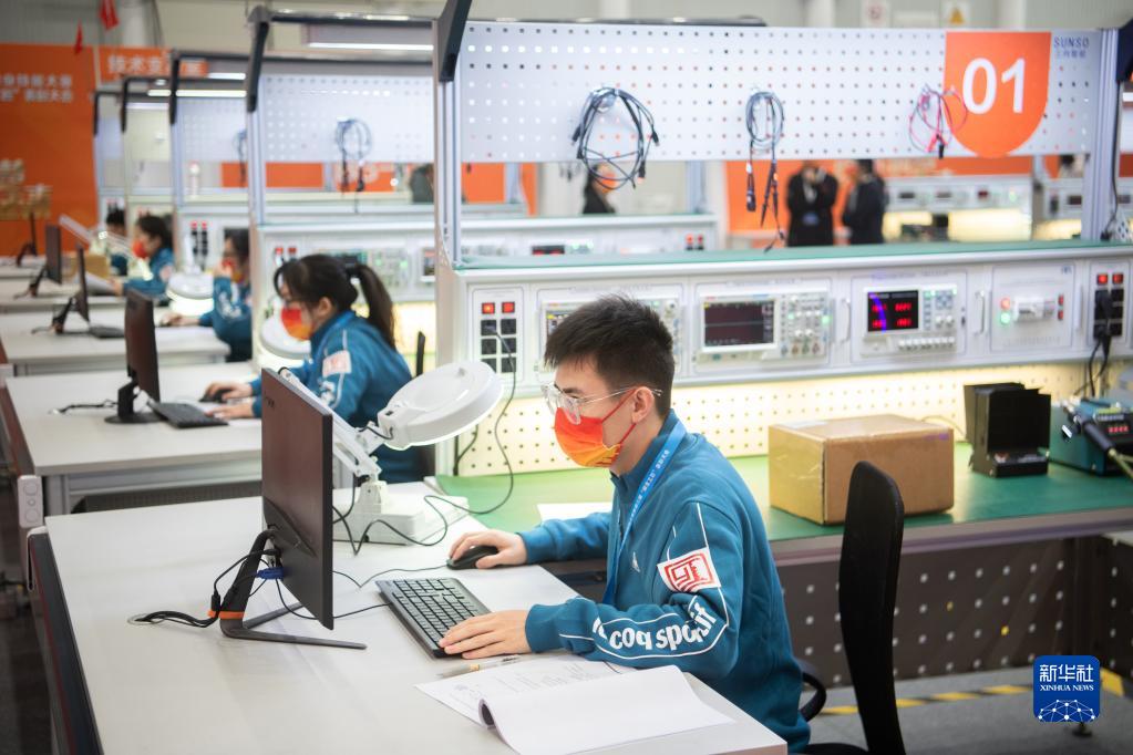 11月17日,參賽選手在電子技術項目比賽中。