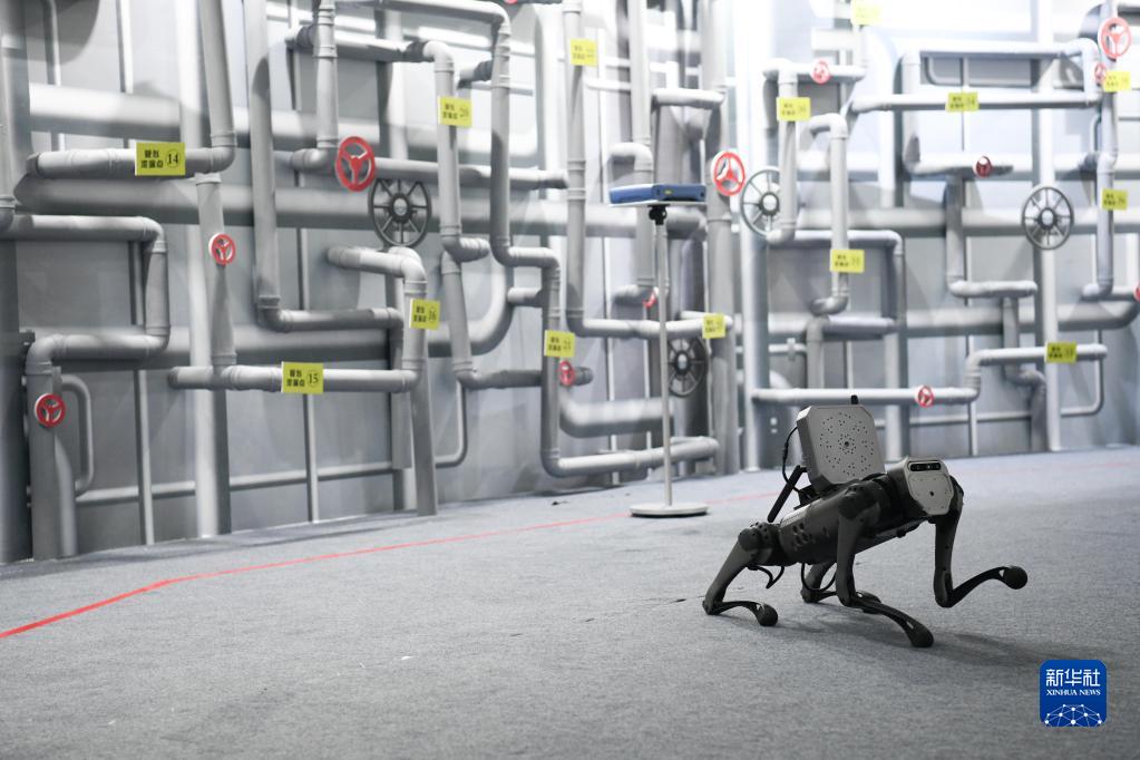 這是活動現場展出的一款應用于工業巡檢的四足機器人(11月17日攝)。