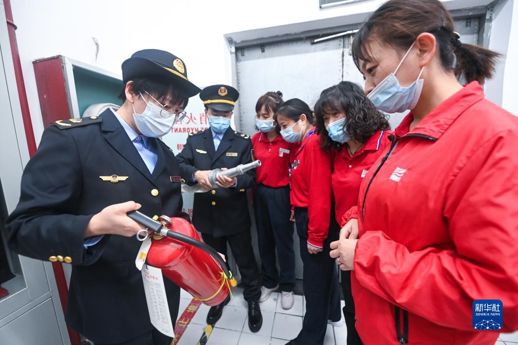 11月17日,龍泉街道應急管理中心工作人員為一家超市員工講解滅火器使用和消火栓連接方法。