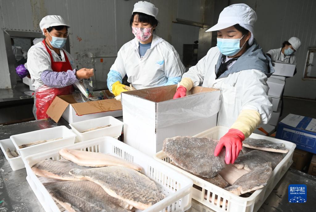 11月16日,在福州元洪投資區,福建淼天匯食品有限公司員工在包裝印尼深海魚產品。