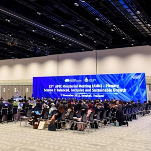 這是11月17日在泰國曼谷拍攝的亞太經(jīng)合組織(APEC)第三十三屆部長級會議現(xiàn)場。