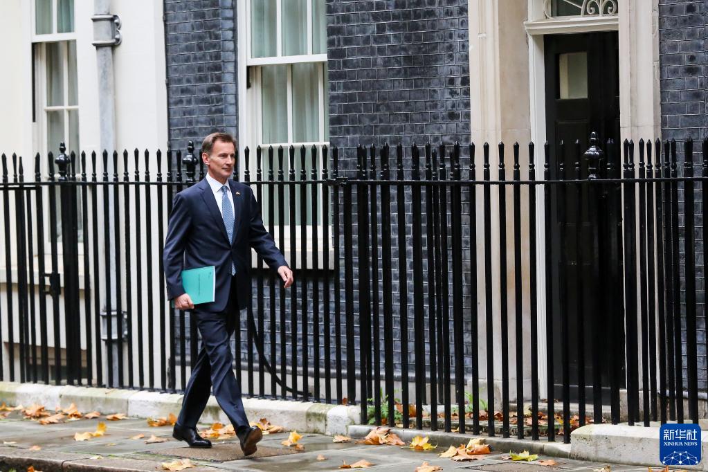 11月17日,在英國倫敦,英國財政大臣杰里米·亨特離開辦公室,準備前往議會公布秋季預(yù)算案。