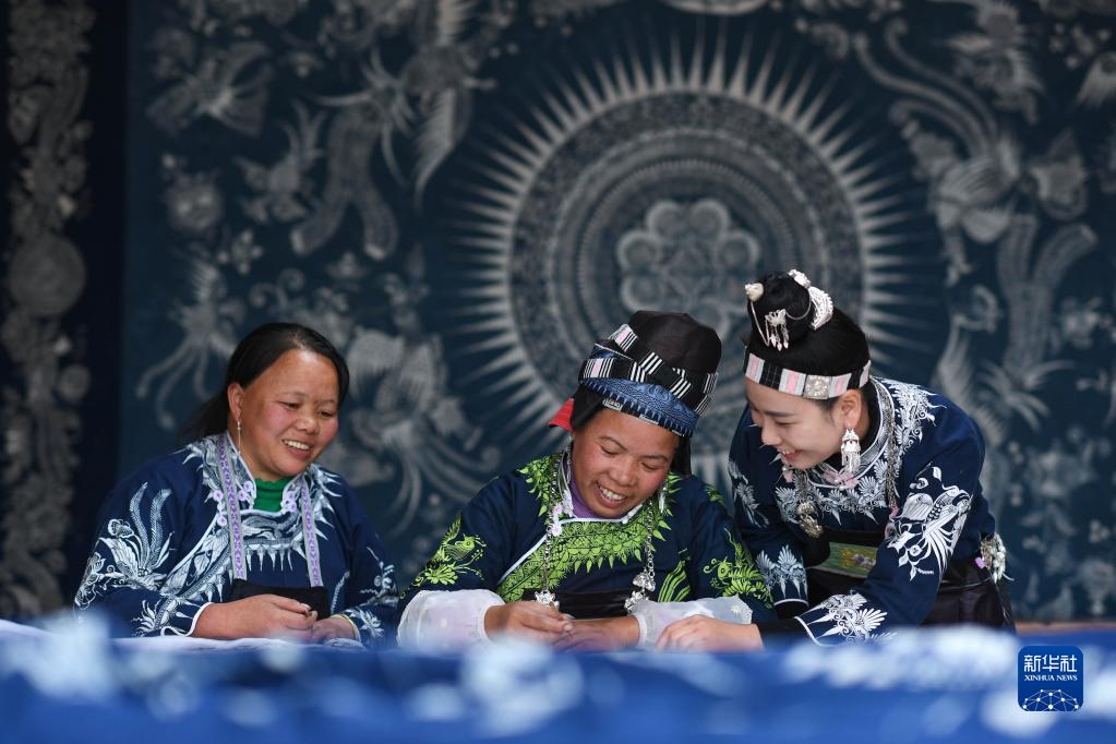 在貴州省丹寨縣龍泉鎮卡拉村的苗族蠟染工坊,村民在畫蠟畫(11月16日攝)。