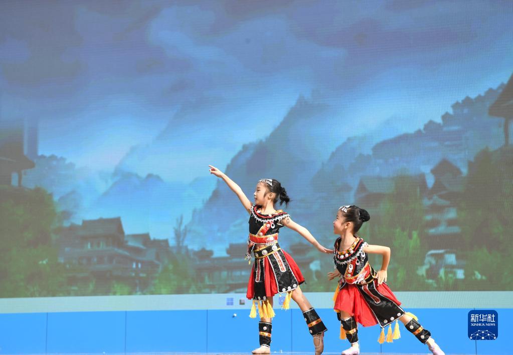 11月18日,兩名孩子在廣西南寧市濱湖路小學教育集團山語城校區表演舞蹈。