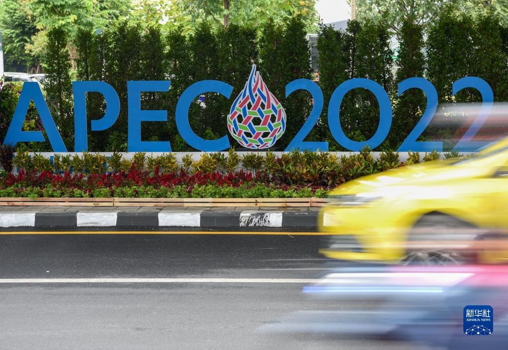 這是11月14日在泰國首都曼谷街頭拍攝的2022年亞太經(jīng)合組織會議標(biāo)識。