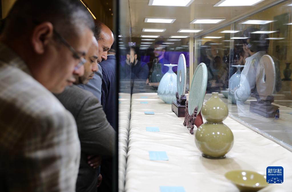 11月17日,觀眾在埃及首都開羅穆罕默德·阿里宮博物館參觀浙江青瓷展。