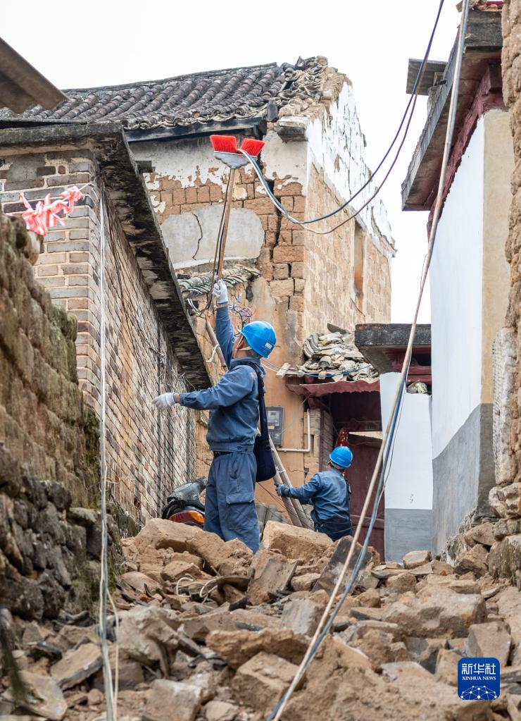 11月19日,在紅河縣浪堤鎮(zhèn)安品村,云南電網(wǎng)紅河縣供電局浪堤供電所工作人員在搶修受損電路。
