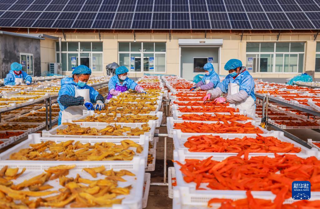 11月19日,在山東省榮成市埠柳鎮東初家村一家甘薯加工企業,工人利用晴好天氣,抓緊晾曬甘薯干。近年來,榮成市埠柳鎮成立甘薯產業合作聯社,以農產品加工企業帶動周邊農村進行甘薯規模化種植,帶動農村集體經濟的發展。