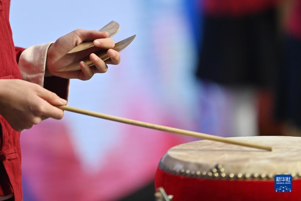 天津師范大學第三附屬小學的學生在練習京東大鼓(11月18日攝)。