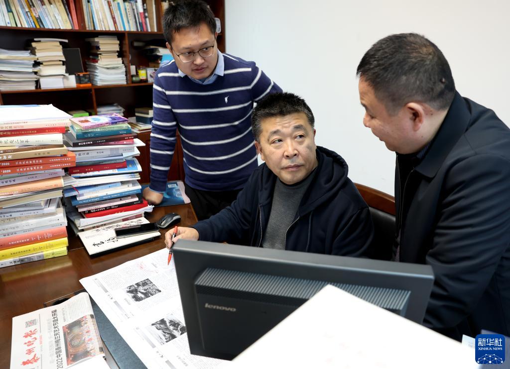 11月17日,《坡子街》副刊編輯在編輯部討論版面,《坡子街》副刊來稿踴躍,編輯每天精選后編發(fā)兩個整版。