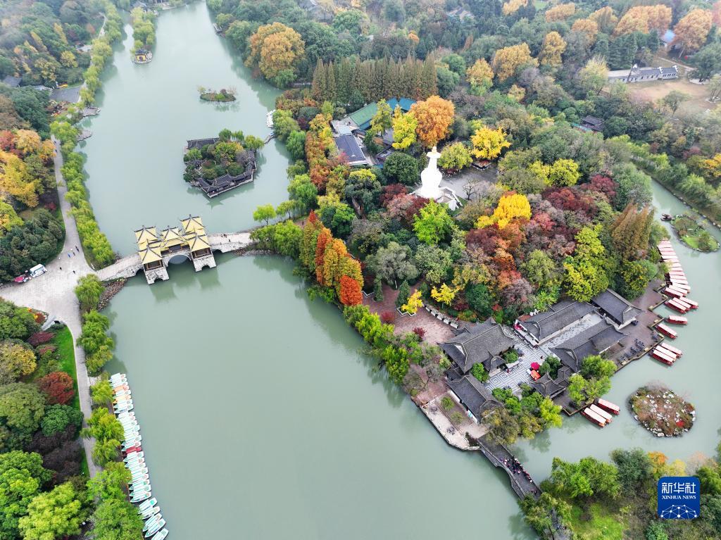 這是11月19日拍攝的江蘇揚州瘦西湖風景區初冬景色(無人機照片)。