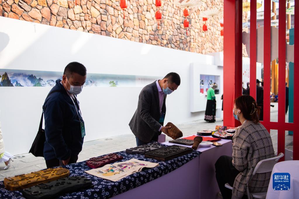 11月19日,游客在張家界大庸古城湖南首屆非遺博覽會現場挑選非遺商品。