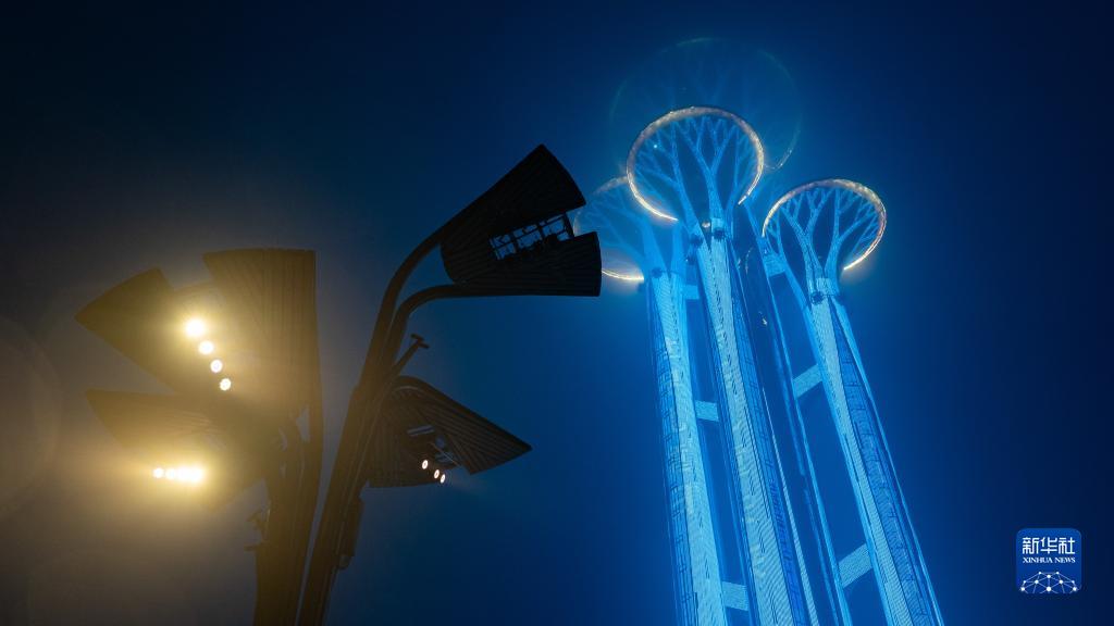 11月20日,北京奧林匹克塔為世界兒童日亮燈。
